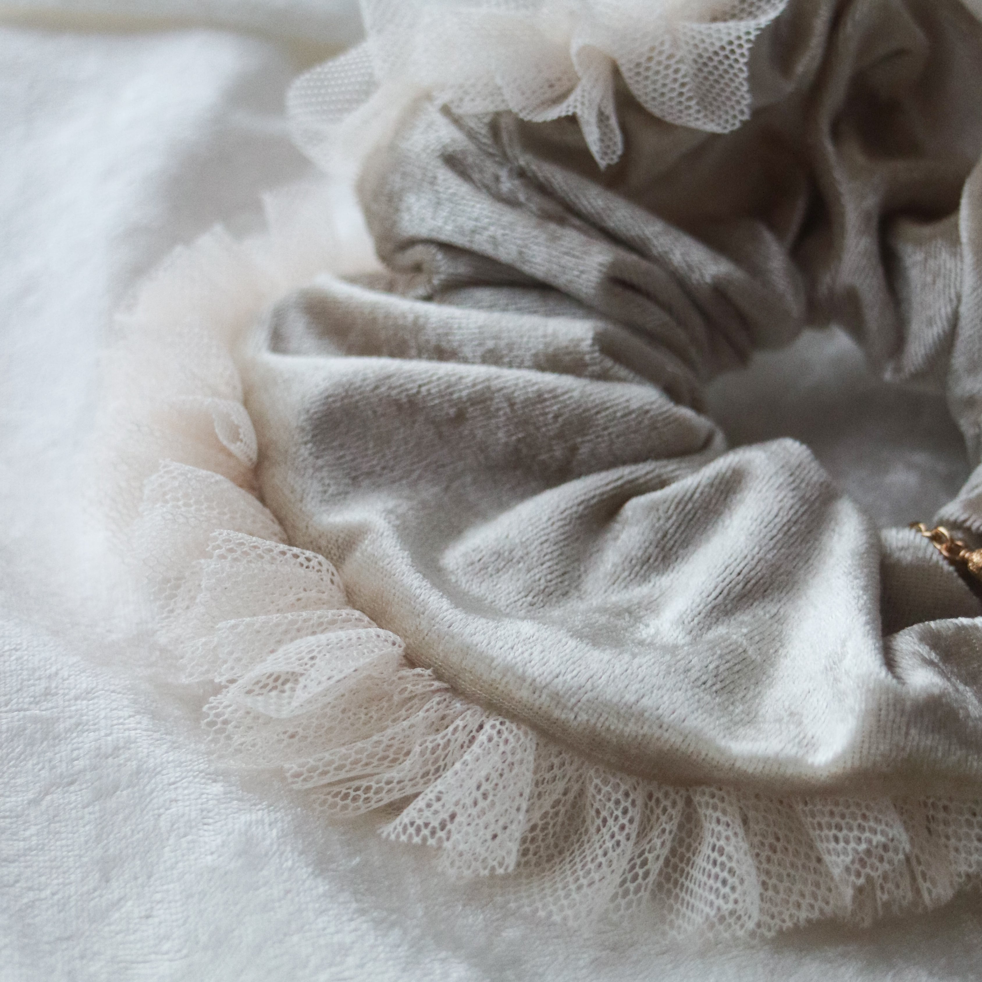 — 気品を纏う、ラグジュアリーなベロアシュシュ — Champagne Beige Gold シャンパンベージュゴールド