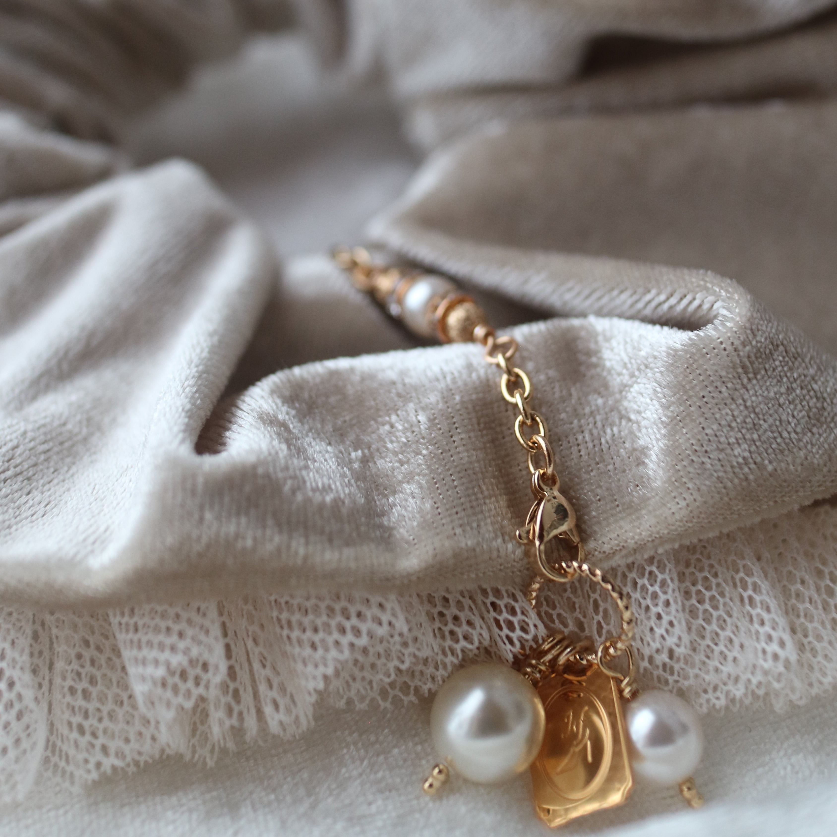 【 素材 】ベロア、ソフトチュール、スワロフスキーパール、ロンデル、チェーン(ステンレス)