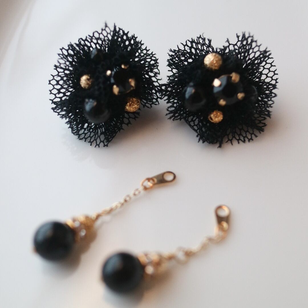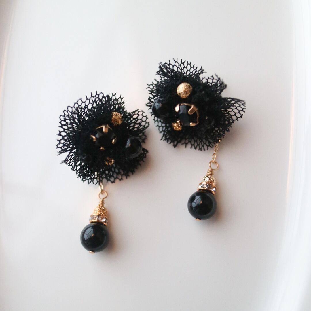 チュールピアス|Douce lumière(柔らかな光)〈 シアーブラック〉