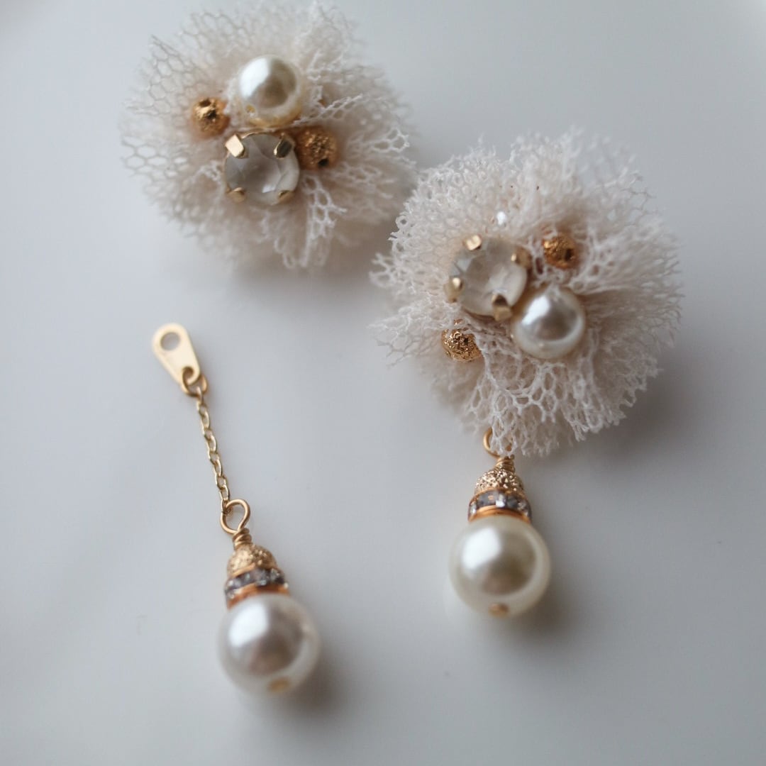 チュールピアス|Douce lumière(柔らかな光)〈 シルキーホワイト〉