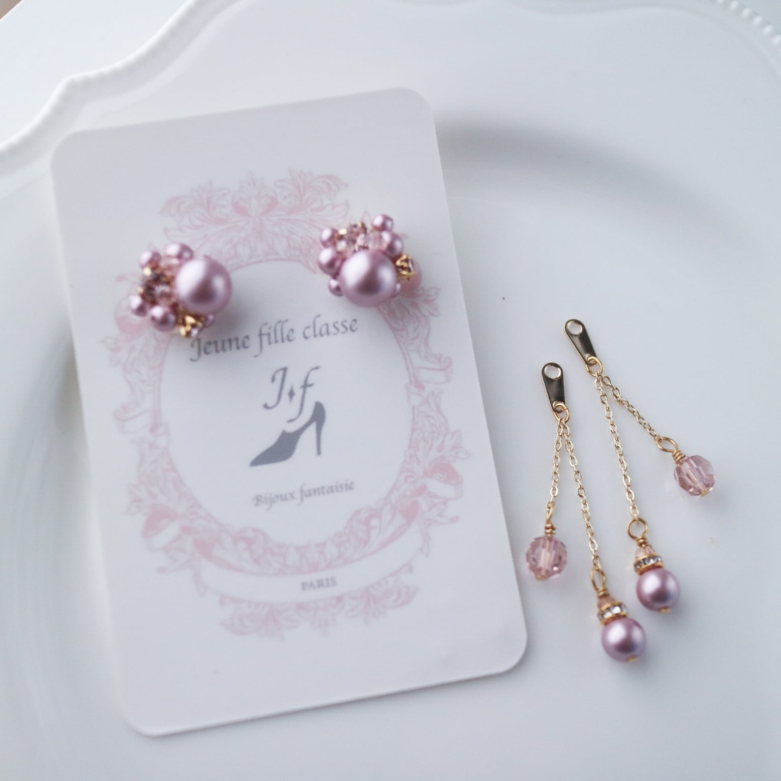 ピアスはチャーム取り外し可能の2way仕様、イヤリングはチャーム固定で手軽に楽しめます。