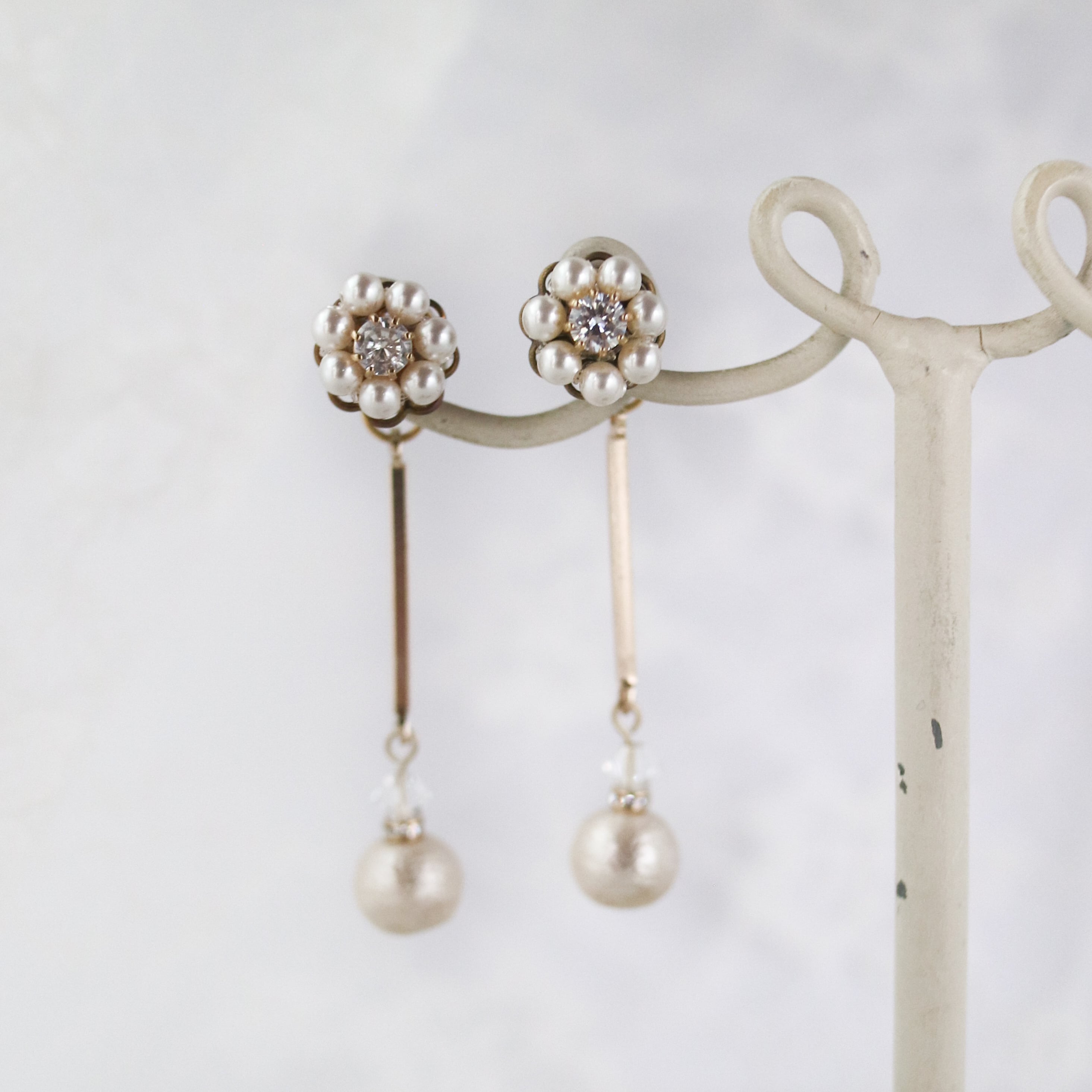 可憐に咲く、2wayマーガレットピアス/イヤリング
