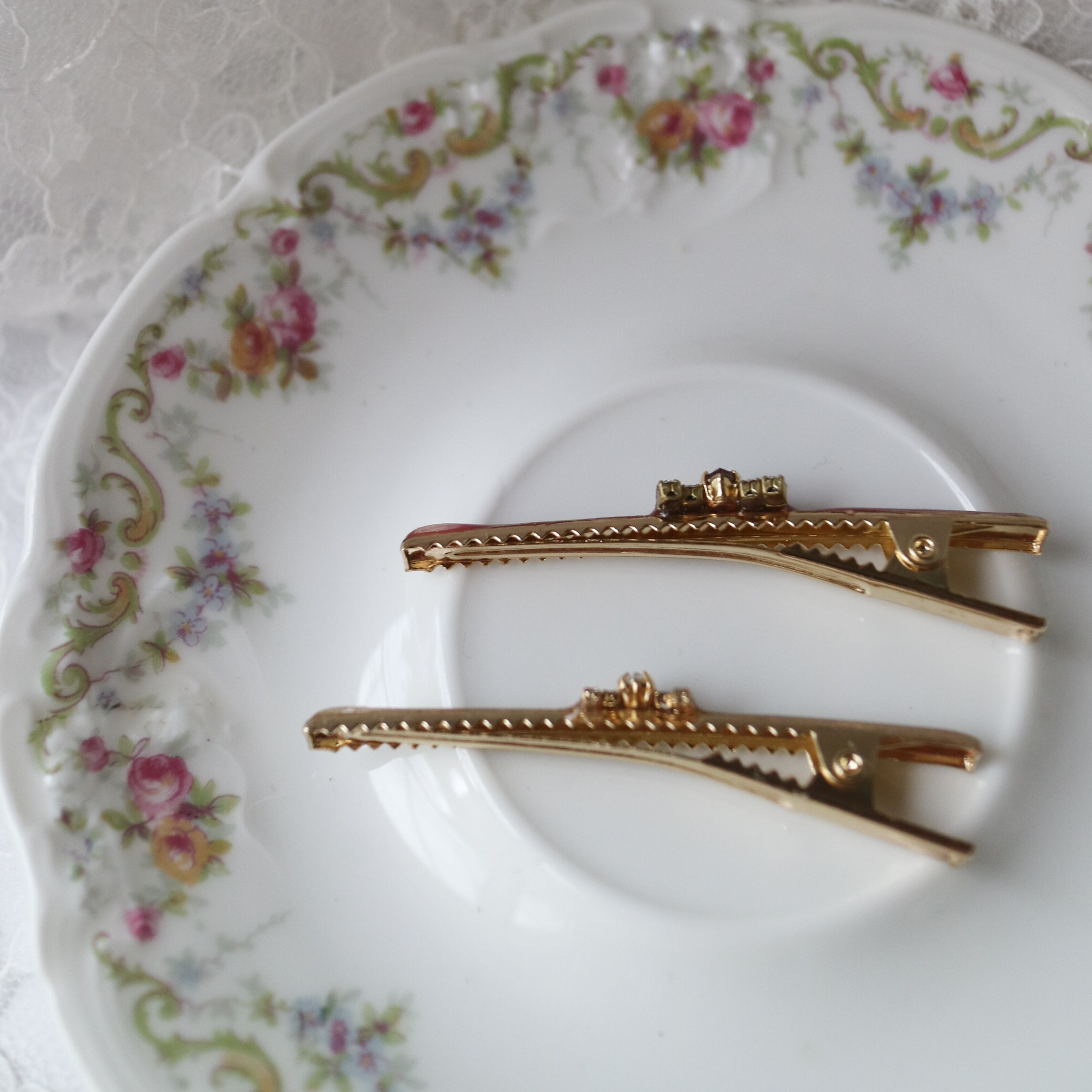 リボンヘアピン 2点セット|キラキラ可愛いゴールド&ピンクゴールド|大人&親子リンクコーデにも